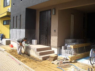 脇の土の部分は駐輪場としての土間コンクリートを打ちました。