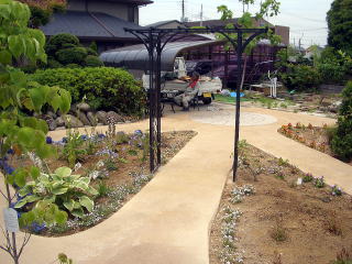 施主様のご要望が花の庭ということでしたので、花壇の周りを散歩できるようなデザインにしました。