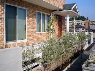 家の正面には低木のシルバープリペット(和名 西洋イボタノキ)、ニューサイラン、ケヤキ、